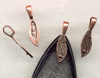 - Give an organic look to your pendant designs with this long and slender solid Copper bail with a delicate leaf design.
