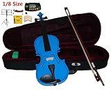 Merano 1/8 Size Blue Violin with Case and Bow+Extra Set of String, Extra Bridge, Shoulder Rest, Rosin, Metro Tuner, Music Stand, Mute